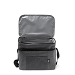 XL-Kühltasche aus RPET-Polyester in meliertem Design. Doppelfach und Vordertasche. Isothermisches Futter. Mehr Kapazität, um Ihre Getränke und Lebensmittel bequem aufzubewahren und zu transportieren.